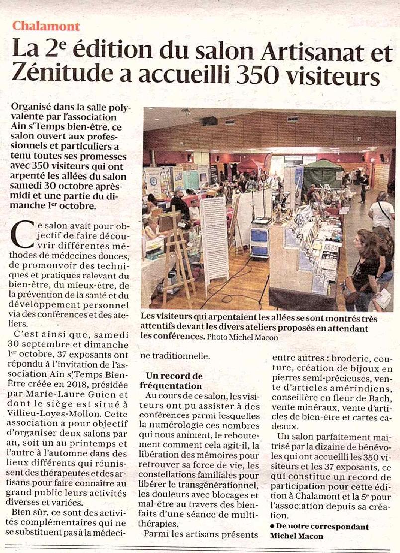 Article La Voix de l'Ain 9 décembre 2022 - Salon novembre 2022