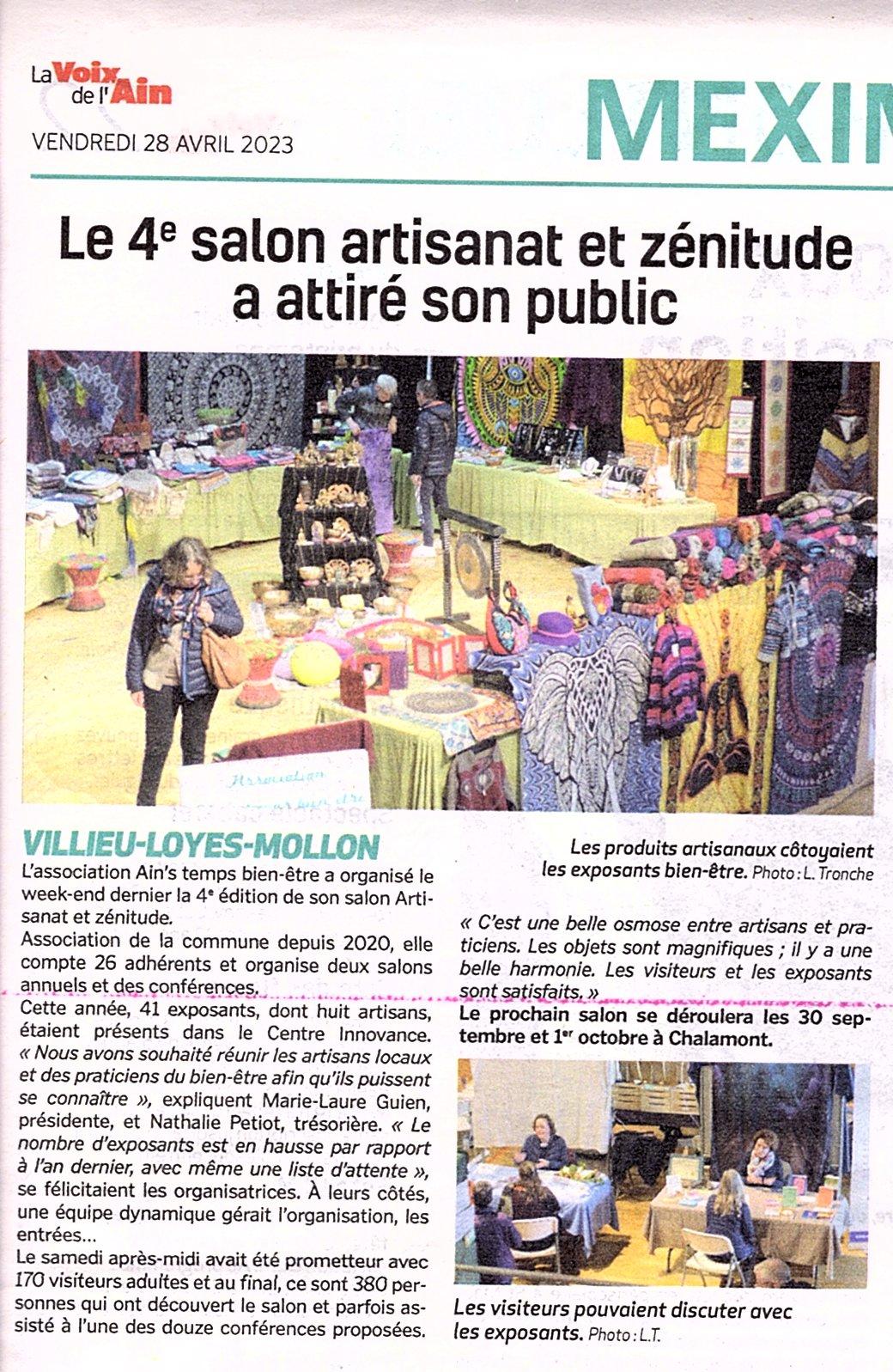 Article "La Voix de l'Ain" du 28/04 au 4/05/2023 - Salon Villieu-Loyes-Mollon des 15 et 16 avril 2023